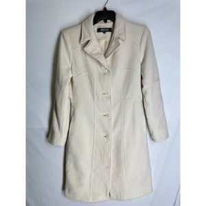 KENNETH COLE REACTION Ivory Wool blend Mid Length Peacoat Trenchcoat Size 12