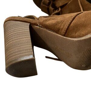 KENNETH COLE REACTION KAY-BOARD BROWN FAUX SUEDE LACE UP SANDALS/HEELS 7.5
