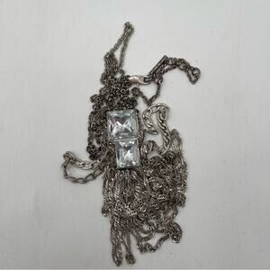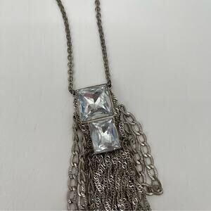 KENNETH COLE REACTION Necklace Long Metal Chain Fringe Rhinestone Jewelry Edgy