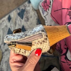 never worn, 7.5, zip angkle, alligaor/leopard print gray and cream, does not include box