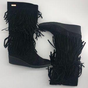 KENNETH COLE Reaction Black Fringe Wedge Boots 5
