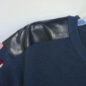 KENNETH COLE Reaction Sweater Navy w/Faux Leather Shoulders Men’s XL NWT