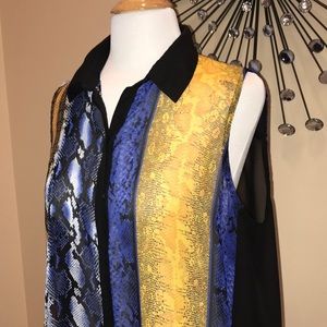 KENNETH COLE Snake Pattern Sleeveless Blouse Top L
