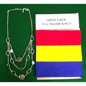 KENNETH COLE layered gold tone fashion necklace with colored stones 24" long measures at bottom chain