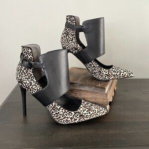 KENNETH Cole Leopard Print Calf Fur Leather Bonnet Stiletto Heels Pumps 8 NWOT