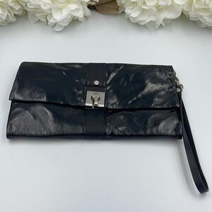 EUC Kenneth Cole wristlet genuine leather three compartments inside plus one pocket zipper. Has double loops for strap so u can wear it on your right or on your left wrist