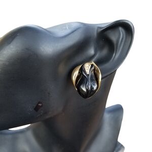 KENNETH JAY LANE FOR AVON 1989 "MIDNIGHT ROSE" BLACK & GOLD STATEMENT EARRINGS