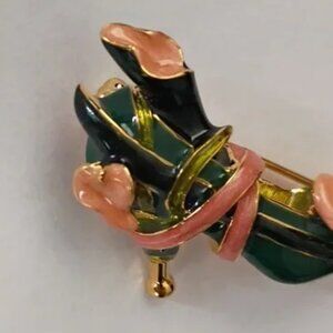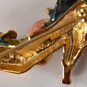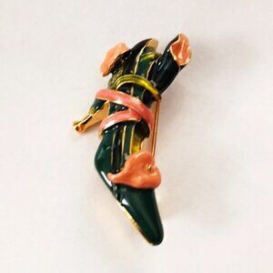 ❤️KENNETH JAY LANE Green and Pink Stiletto Pump Shoe Brooch Pin Signed KJL