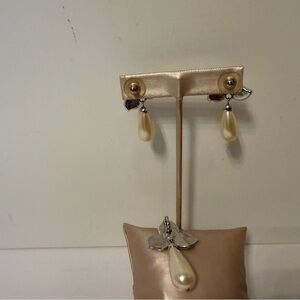 KENNETH JAY LANE SIGNED KJL SET EARRINGS PIERCED & PENDANT ENHANCER SILVER-TONE RHINESTONES FAUX PEARL DANGLE DROP VINTAGE CLASSIC STATEMENT DESIGNER LUXURY JEWELRY