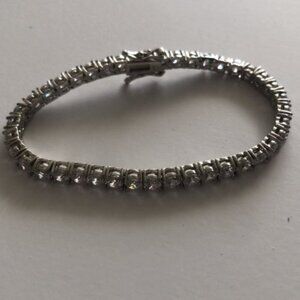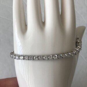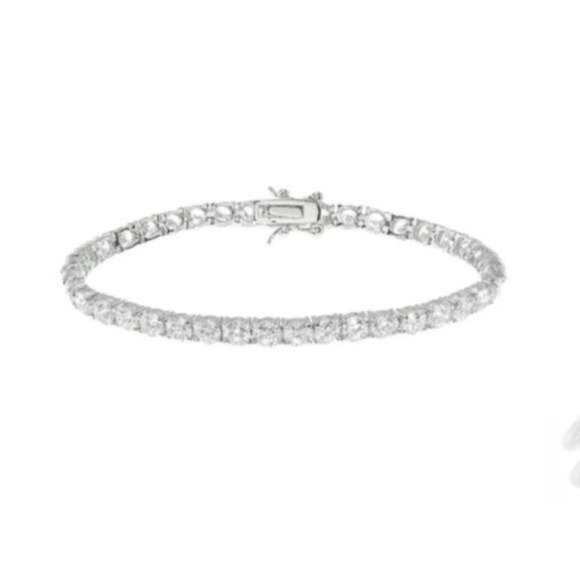 KENNETH JAY LANE Rhodium Plated Round CZ Tennis Bracelet CZ 7" long
