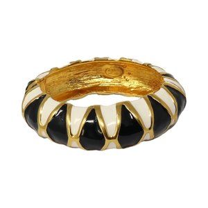 KENNETH JAY LANE, TWO TONE BLACK ENAMEL WITH PEARL CABOCHONS GOLD BANGLE BRACELET, GREAT FOR STACKING!!