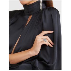 The perfect finishing touch to a gown or cocktail dress, this ring is cast from silver-tone metal in a three-tier structure.
