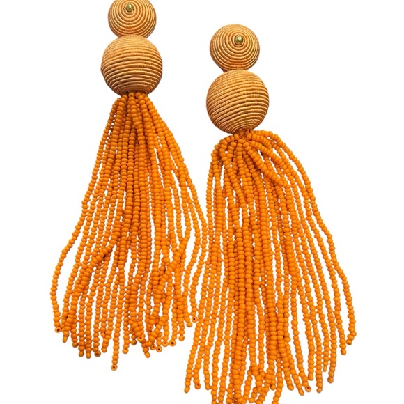 Add a pop of color to your outfit with these elegant orange beaded tassel earrings. Perfect for any occasion.