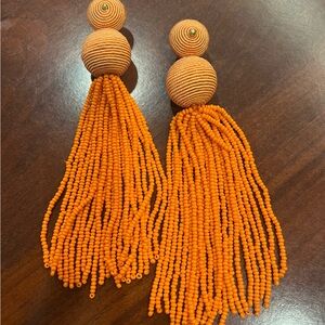 KENNETH LANE Elegant Orange Beaded Tassel Earrings - fun dangle! - stamped - EUC