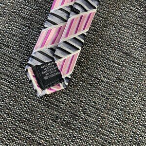 KENNETH ROBERTS Platinum Pink Black Necktie - silk designer geometric striped