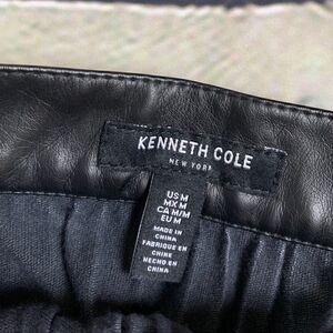 KENNETH COLE pleated faux leather skirt. Side zip and button. Has a bit of a strange material smell from the material it is made of. Raw hem. Size M.