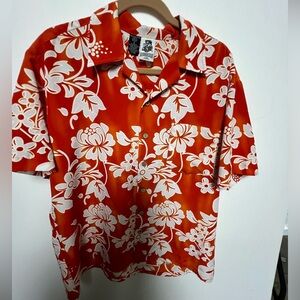 KENNINGTON LTD HAWAIIAN ORANGE AND WHITE PRINT SHIRT. SIZE L.