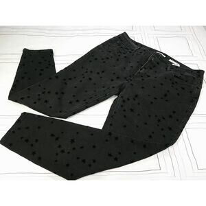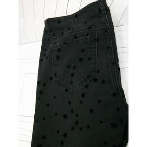 KENSIE Black W/Black Embossed Velvet Stars Ankle Mid Rise Skinny Jeans-Womens 14