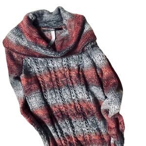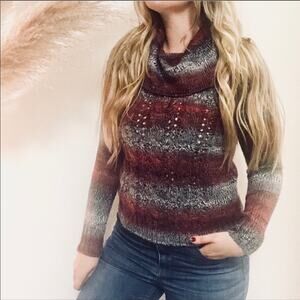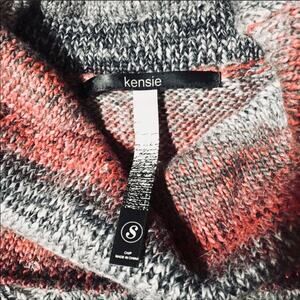 KENSIE Cowl Neck Red Grey Gradient Striped Pullover Knit Cowl Neck Sweater Small