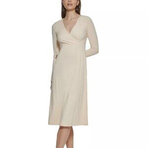KENSIE DRESSES Womens Beige Knit Long Sleeve Below The Knee A-Line Dress Size M