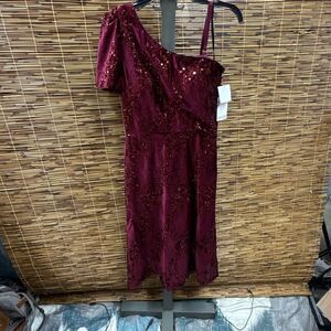 KENSIE DRESSES Womens Burgundy Zippered Lined Sequined Padded Bust Darted Short Sleeve Size 8