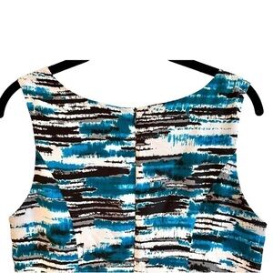 KENSIE, FIT & FLARE DRESS. SIMPLE & FLATTERING STYLE. SLEEVELESS, ROUND SCOOP NECK WITH 4” RUFFLE TOP TO BOTTOM. HIDDEN BACK ZIPPER. FULLY LINED. 100% POLYESTER. SIZE L