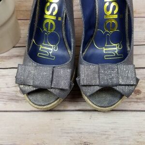 KENSIE GIRL Blue Golden Bow Canvas Espadrilles 7B