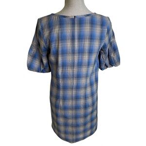 Tags plaid babydoll shimmer blue gray short sleeve adorable