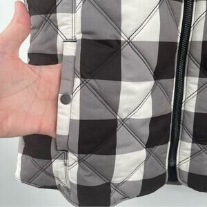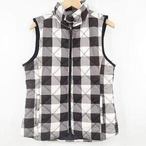KENSIE Jeans Vest Buffalo Check Quilted Black & White Pockets Zip Up SZ Medium
