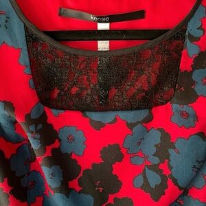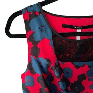 KENSIE NWOT SLEEVELESS RED BLUE FLORAL LACE FIT & FLARE DRESS LINED | SMALL