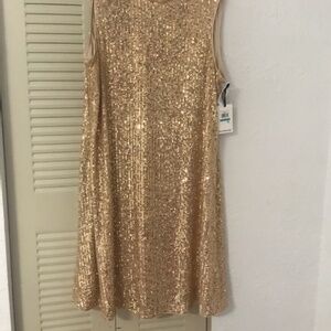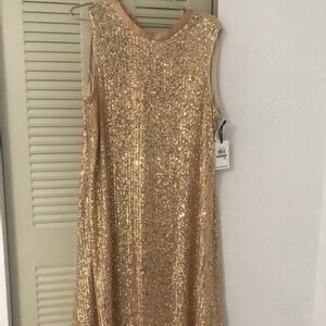 KENSIE Sequin Mockneck Gold Shift Party Christmas Holiday Dress Size 16 NWT