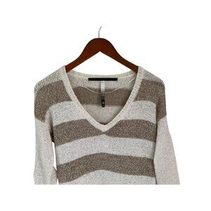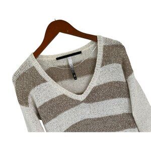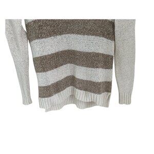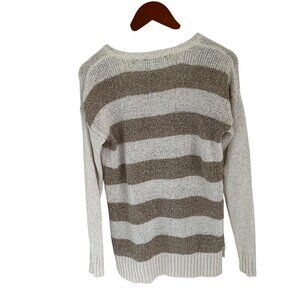 KENSIE Sweater Women's Small Beige Tan Striped Long Sleeve V-Neck Open Knit
