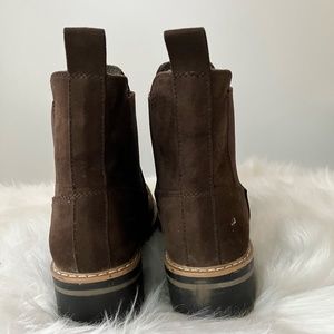 Like new faux suede brown chelsea style boots. In excellent shape. Great look!
