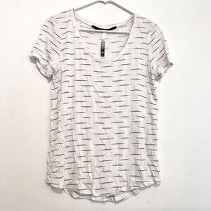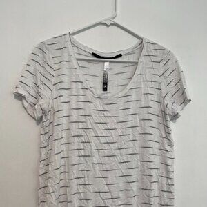 KENSIE White Gray Striped Brushstroke Print Scoop Neck Short Sleeve T-Shirt Tee