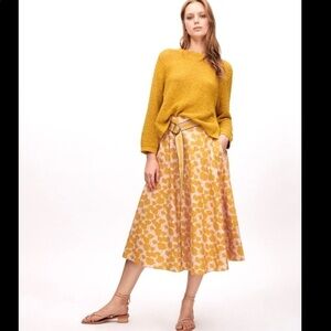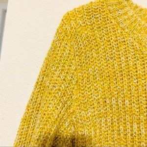 Gathered Side pullover oversized sweater. Color is Pale Yellow with metallic threading throughout.