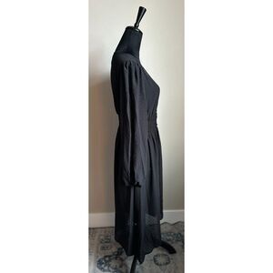 KENZIE Black Sheer V Neck Button Front Polka Dot Long Sleeve Midi Dress Size M