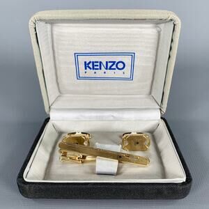 KENZO Gold Metal Monogram Cuff Links Tie Clip Set