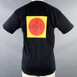 KENZO Size M Paris Black Multi Color Print Cotton Crew-Neck T-shirt