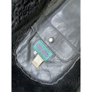 KENZO Women’s Genuine Leather SHEARLING LEATHER JACKET Coat Black Small EU 38