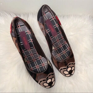 KENZO Women's Suede Floral Print Vintage Boho Brown Heels 37
