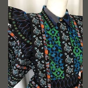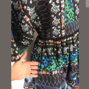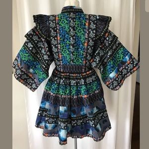 Beautiful limited edition dress from H&Ms collaboration with KENZO. Bright colors, wide cute kimono style sleeves, button up chest, the skirt part has two pockets, zipper on the side. Brand new, with tags, size XS.