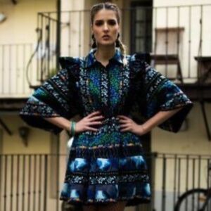 KENZO x H&M - Blue & Black Animal Print Kimono Dress, Size M