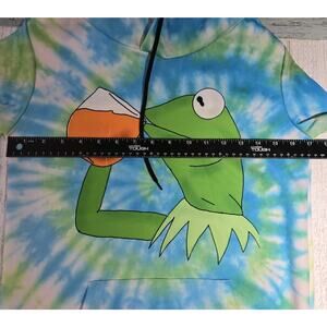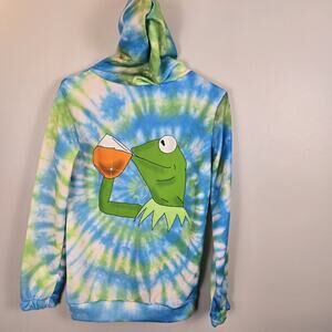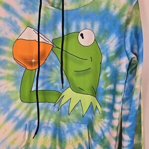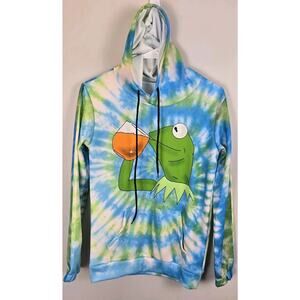 This Kermit the Frog W Wine Tie Dye Hoodie is a lightweight and fun activewear piece perfect for a party or casual outing. The pullover hoodie features a graphic print of Kermit the Frog on both sides, making it a unique and colorful addition to your wardrobe. The medium size and long sleeves ensure a comfortable and stylish fit, while the tie-dye design adds a festive and whimsical touch. Show off your love for cartoon characters and colorful themes with this novelty hoodie that is sure to make a statement.