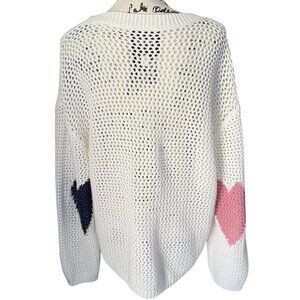 KERRI ROSENTHAL Size XL Heart Sleeve Catch Open Stitch White Sweater Oversized