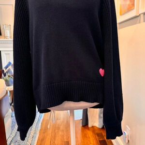 Elevate your winter wardrobe with the luxurious Kerri Rosenthal Puff Sleeve Pullover Sweater. Crafted from soft, cozy fabric, this pullover features puff sleeves for a touch of feminine charm. The Night Sky color adds a touch of elegance, making it the perfect addition to any outfit. plus a little pink patch heart sewn onto the bottom left side