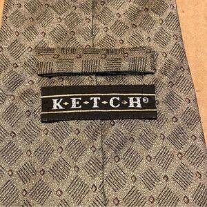 KETCH Mens Green Geometric Silk Tie Necktie No Rips No Stains Length 57” Width 4”