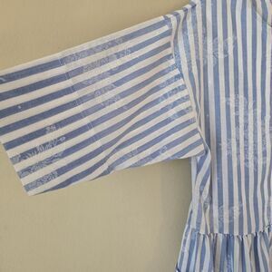KEYLOUN Vintage Women's Midi Dress Cottage Core Striped Blue White Size M