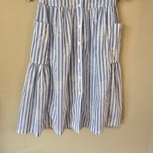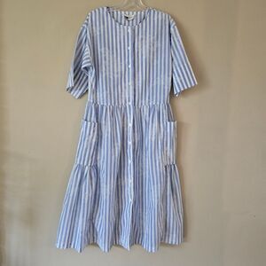 KEYLOUN Vintage Women's Midi Dress Cottage Core Striped Blue White Sz M Farmcore