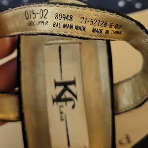 KF Ltd. vintage black floral open toe ankle strap heels women's size 7.5