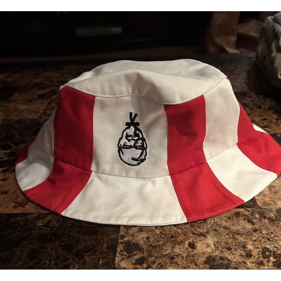 This hat represents a collaboration with a St Petersburg Russian Streetwear Company designed as arebranding effort for the KFC market in Russia. The Hat mimics an upside down bucket. July 2019 Limited edition in great shape. No flaws seen.